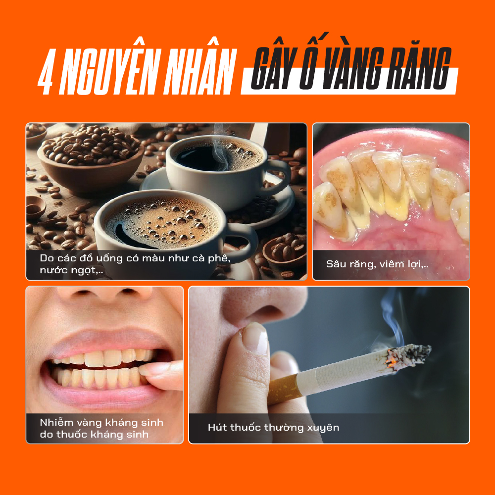 Răng bị vàng do hút thuốc, uống trà, cà phê