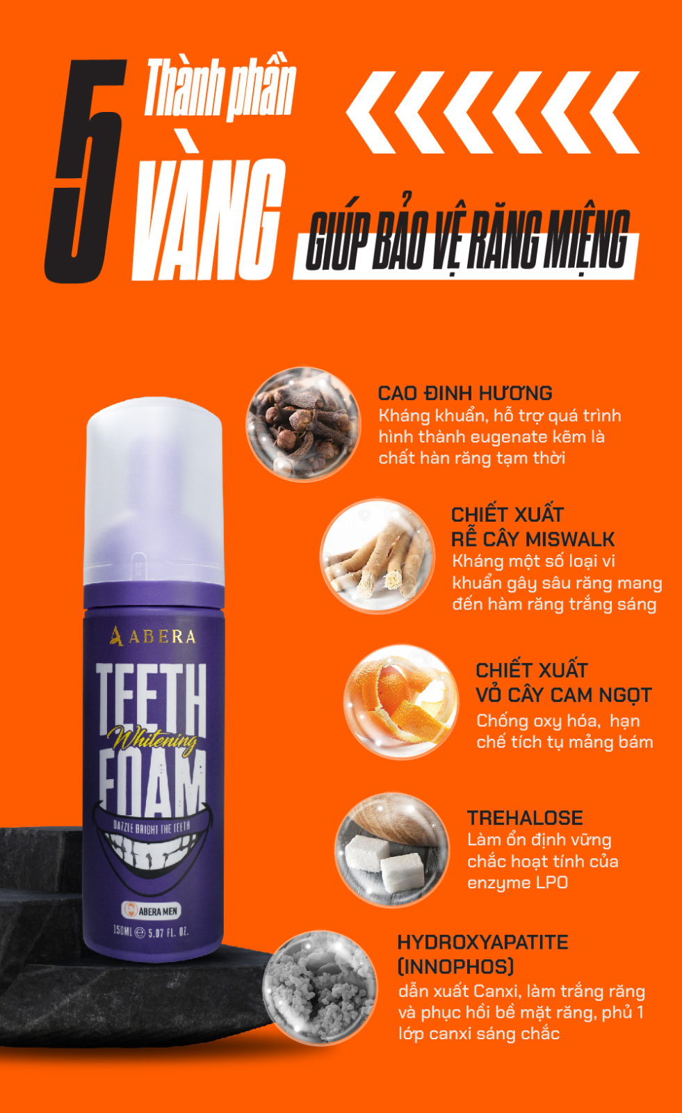 Bọt Trắng Răng Abera Men - Công Nghệ Sắc Tím, Trung Hoà Sắc Vàng