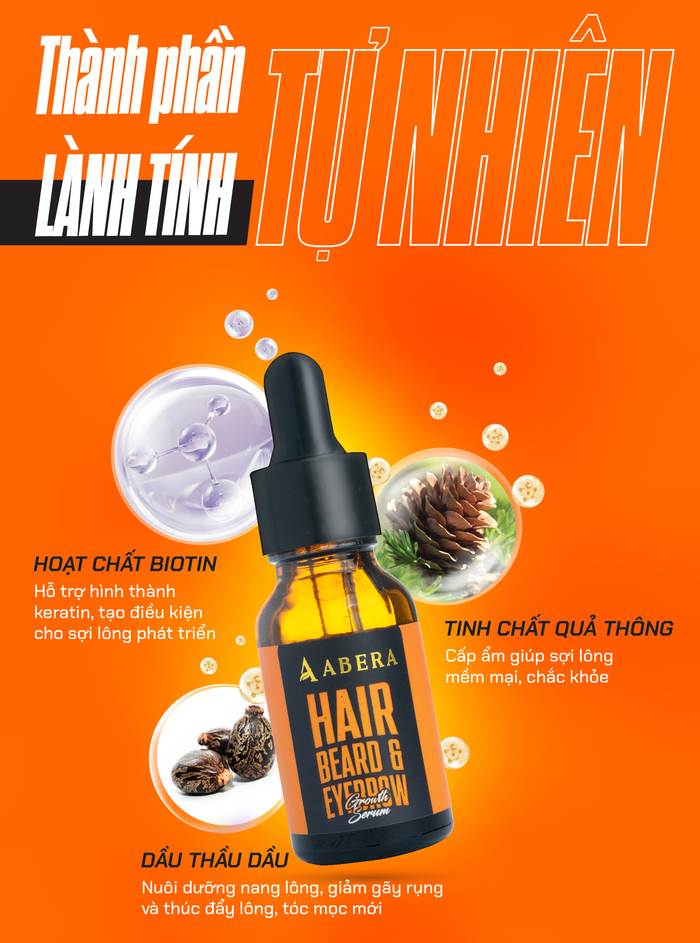 Serum Kích Mọc Râu & Mày & Tóc Abera Men 15ML Chính Hãng - Hỗ trợ Râu Dài, Mày Rậm, Tóc Chắc Khoẻ