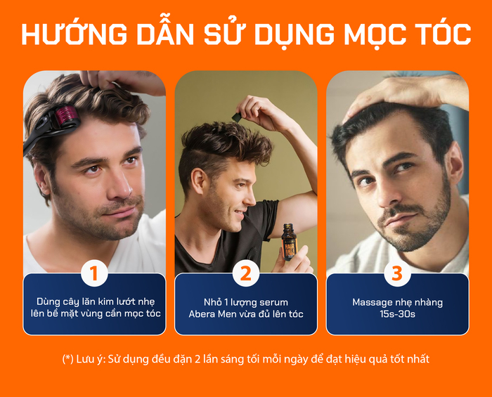Combo 2 Chai Serum Kích Mọc Tóc Râu Mày Abera Men - Tặng Lăn Kim 0,5mm