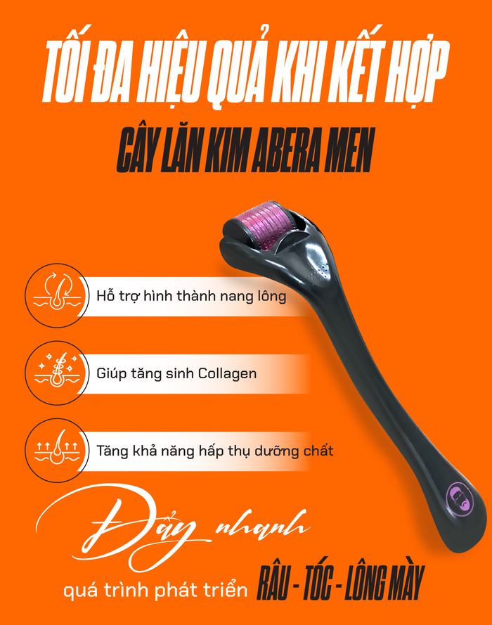 Combo 3 Chai Serum Kích Mọc Tóc Râu Mày Abera Men - Tặng Cây Lăn Kim 0,5mm