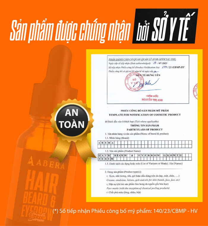 Serum Kích Mọc Râu & Mày Abera Men 15ML Chính Hãng - Hỗ trợ Râu Dài, Mày Rậm, Ngừa Gãy Rụng