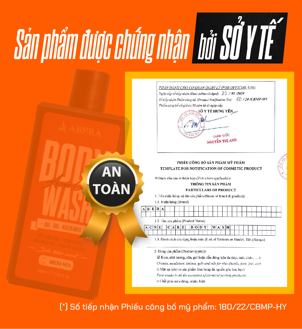 Sữa tắm hỗ trợ xử lí mụn lưng Abera Men