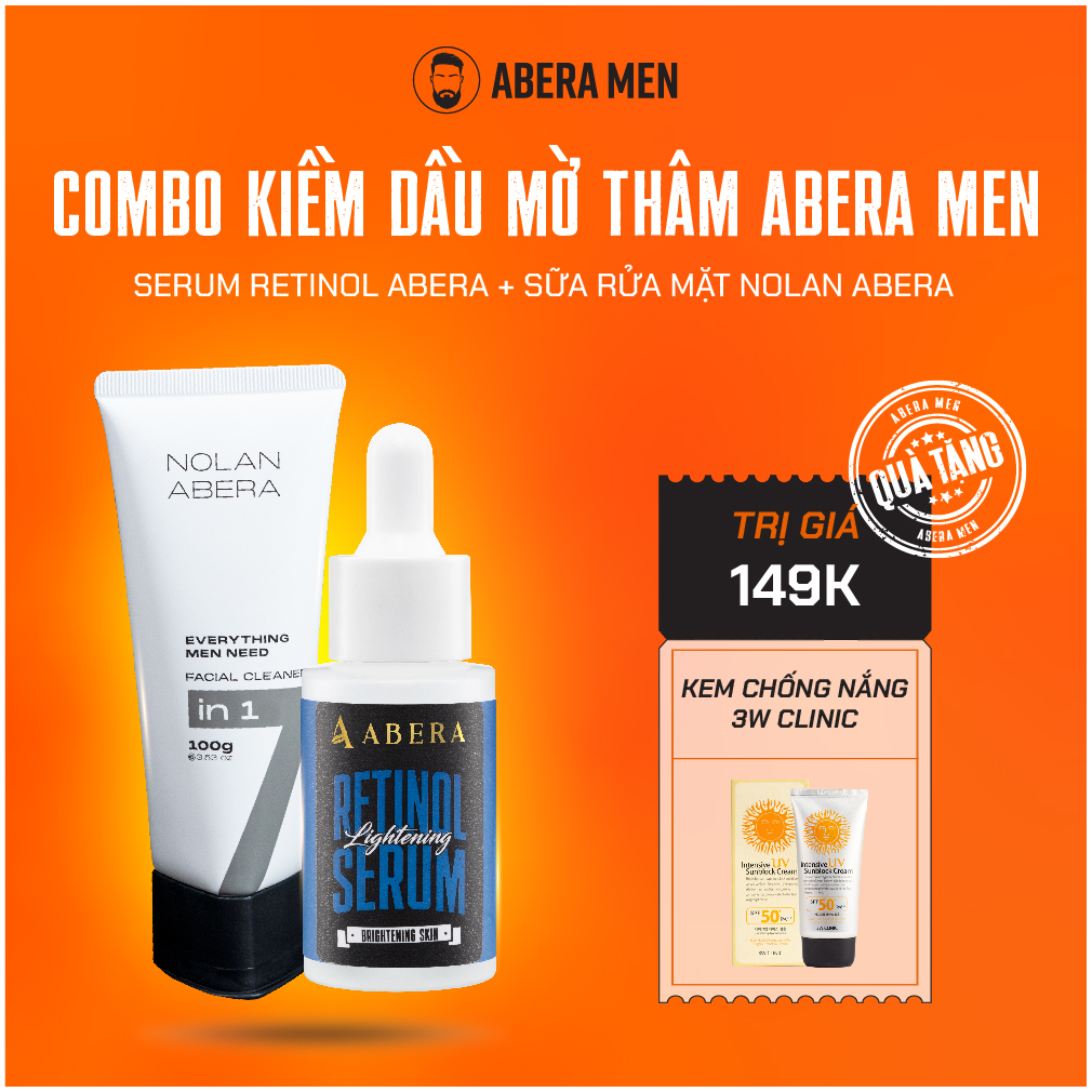 Combo KIỀM DẦU MỜ THÂM - Serum Retinol Abera & Sửa Rửa Mặt Nolan ABera