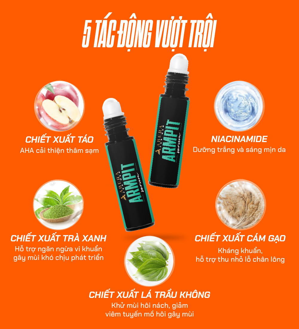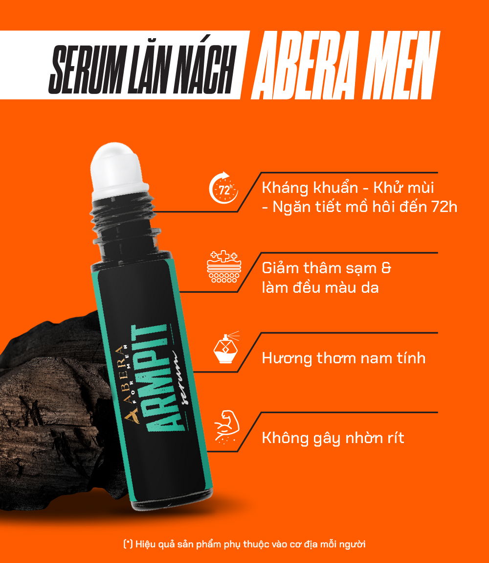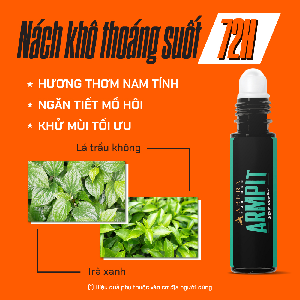 Không chỉ là sản phẩm chăm sóc, Serum Lăn Nách Abera Men còn là vũ khí bí mật giúp bạn tự tin tỏa sáng trong mọi tình huống. Được thiết kế đặc biệt sở hữu kết cấu mỏng nhẹ, thấm nhanh giúp khử mùi, ngăn tiết mồ hôi lên tới 72h. Ngoài ra, sản phẩm còn có tác dụng giảm thâm, dưỡng trắng vùng da dưới cánh tay nhờ thành phần chiết xuất Lá Trầu Không, Trà Xanh, Cám Gạo.